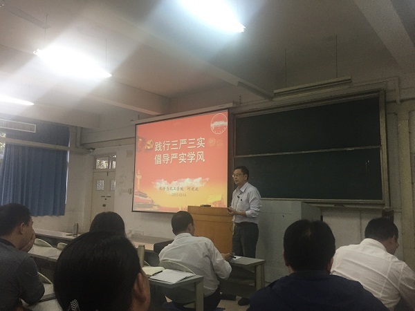 根据学校要求和《中共yl12311线路检测委员会开展“三严三实”专题教育的实施方案》安排,10月14日下午,yl12311线路检测执行院长何建波教授在西二教学楼108教室举行“践行三严三实,倡导严实学风”院长专题讲座。这是yl12311线路检测继书记专题党课之后的第二场报告会,全院教职工参加了会议。