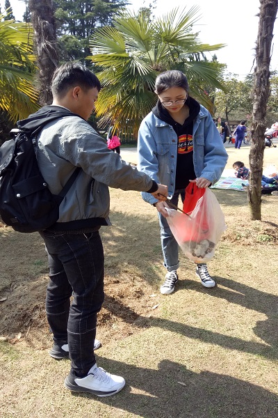 活动期间,该院学生会组织部分同学前往合肥市植物园开展环境保护志愿服务活动。志愿者们通过主动和园内部分工作人员交流,学习植树和各类植物保护的相关知识,并帮助环卫工人清扫园内垃圾,共同维护环境卫生。在校内,该院也组织了“植树节”相关的宣传教育活动,通过向广大同学发放植树主题宣传单页和环保知识问答的方式,扩大保护环境政策的宣传力度,以提高同学们保护生态环境的意识。