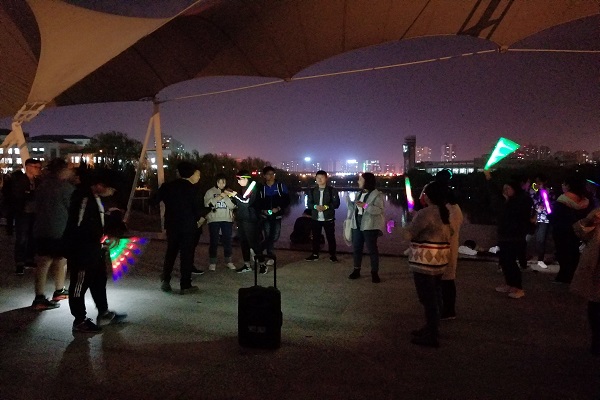 活动中,组织者在尽可能减少能源消耗的原则下,仅以荧光棒、手电筒作为照明工具为同学们进行表演。活动现场,由该院文艺部同学带来的悠扬歌声令同学们驻足倾听,欢快的氛围令同学们热情洋溢,新颖的宣传方式更是吸引了很多同学加入其中,展现自身才艺。现场同学在了解到路演活动的目的后,积极带动身在寝室的同学关掉电器、走出宿舍、走向校园,达到了非常好的宣传效果。