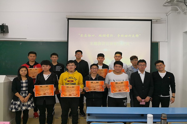 此次比赛成绩由评委们从内容主旨、语言清晰度、语言风采、神态动作、时间控制五个方面对参赛人员的表现进行评比打分。经过激烈比赛,最终来自化学工程与工艺16-3班的胡世浩获得一等奖;化学工程与工艺17-2班牛家成、化学工程与工艺17-3班孙浩然两位同学获得二等奖;化学工程与工艺17-2班杜一博、高分子材料与工程17-2班冯广穗、应用化学17-1班熊欢三位同学获得三等奖;来自高分子材料与工程16-2班仕东镇等四位同学获得优秀奖。评委们为参赛选手现场颁发了奖状及奖品。