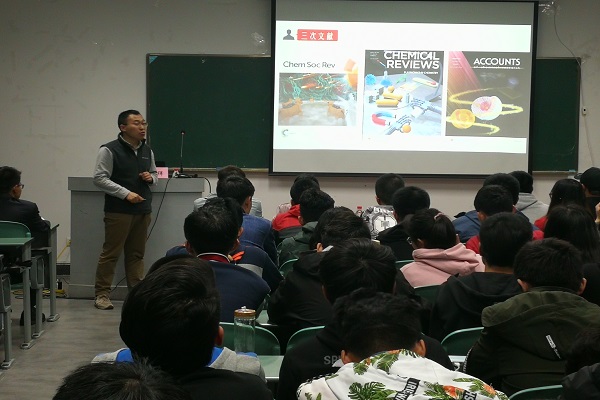 讲座上,吴祥老师从“何为综述”出发,结合个人学习生活实例为同学们深入浅出地讲解了“为何综述”、“如何综述”以及“综述文献的基本结构”和“撰写文献的要点”等内容。吴老师以“只有站在巨人的肩膀上,才能站得更高、看得更远”为基点,勉励同学们积极培养自主阅读文献的良好习惯,不断开拓眼界。