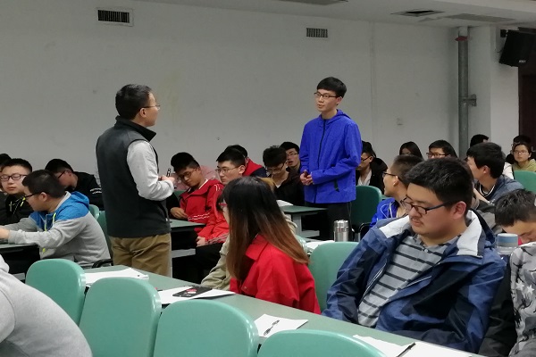 在现场提问环节中,吴老师回答了同学们关于科研训练和大创项目的相关问题。他指出,科研训练及大创项的目的是引导学生树立“理论联系实际”、“以实际检验理论”的学习理念,切实培养学生以独立或团队形式完成工程性项目的能力。讲座最后,老师以红军长征的历史为例,告诫同学们科技素养的培养不在一朝一夕之间,而在于平常学习的严格要求和点滴积累之中。讲座现场,老师的讲解严谨而不失风趣,同学们认真聆听、深入思考、积极提问,现场秩序良好,气氛活跃。