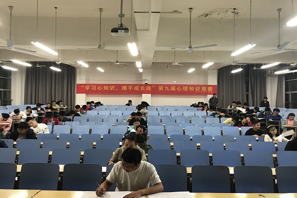 此次心理知识竞赛分初赛和复赛两个环节,初赛形式为笔试,于2018年4月14日在翡翠湖校区3教202进行,笔试内容主要涵盖心理健康基本知识、心理调适基本技巧和院校两级心理健康工作概况,共百余人参加笔试。
