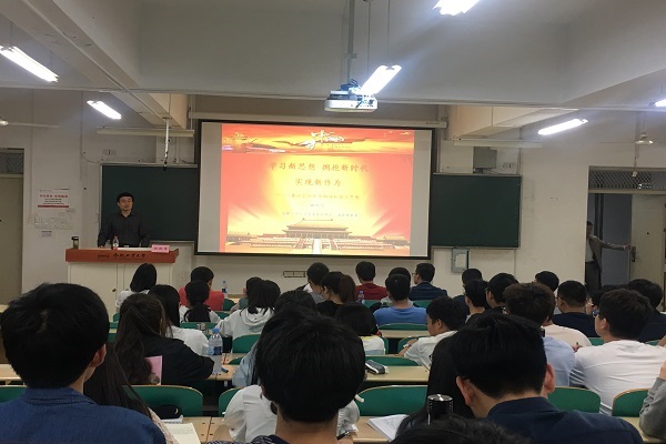 姚跃传老师给同学们作了题为《学习新思想,拥抱新时代,实现新作为——兼论党的性质纲领和指导思想》的专题党课。姚跃传就“八个明确”与“十四个坚持”阐述了习近平新时代中国特色社会主义思想的深刻内涵,引出对新党章的学习和解读,他认为作为一名入党积极分子,首先要认真学习《中国共产党章程》,了解中国共产党是一个什么样的党。姚跃传强调了要正确认识党性的几个基本问题,阐述了中国共产党领导的多党合作和政治协商制度的重要性,他明确指出中国特色社会主义最本质的特征,中国特色社会主义制度最大的优势是中国共产党的领导。同时,姚跃传通过讲解经典事例,深层次的剖析了我国社会主要矛盾的转化,用“民族振兴、国家富强、人民幸福”三个深入阐述“中国梦”的含义。最后,他结合党的十八大以来,我国在全面建成小康社会、全面深化改革、全面依法治国、全面从严治党以及政治、经济、文化、社会、生态、军事等领域取得的巨大成就,明确了青年的社会担当和历史使命。党课中生动有趣的讲述获得了在场学员们的一阵阵掌声。