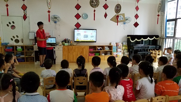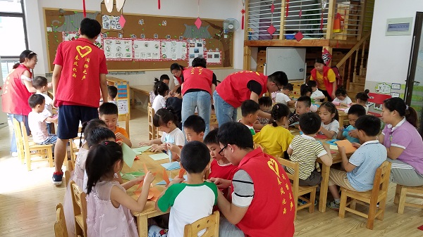 活动当天,志愿者们准时前往充满生机与活力的中科院幼儿园禹州华侨城园,与孩子们共同庆祝“六一”儿童节,志愿者们首先通过PPT讲解的方式为孩子们介绍了“六一”国际儿童节的由来,孩子们都表现出了极大的兴趣,并与志愿者们分享了他们欢快激动的心情。随后,孩子们在志愿者的带领下,认真学习了儿歌《庆祝六一》,用这个时代最纯真的歌声,共同唱响了属于孩童的喜悦,流露出浓浓的欣喜之情。之后,志愿者们给小朋友进行折纸教学,一双双稚嫩的手折出了美丽的花朵,志愿者们告诉孩子们可以将自己折的花送给老师或者父母,让他们与自己共同欢庆这个美好的节日。小课堂结束后,志愿者们组织大家做起了游戏“贴鼻子”,在一片欢声笑语中,孩子们不仅收获了游戏的欢乐,更体会到了这个节日独特的意义。