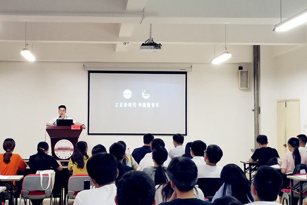 典礼后,校团委副书记陈竹为培训班学员作了题为《立足新时代,争做新青年》的专题报告。陈竹详细讲述了共青团的成立过程,用观看视频的方式使学员们生动地了解了共青团成立之初的艰难岁月,阐述了青年人在历史发展中所展现出的推动作用;用一个个真实的事例激励学员们学习革命先辈们爱国救亡的热血,传承马克思主义卓尔不凡的思想,迸发出青年干部敢为人先的勇气,展现出青年人百折不挠的精神;接着陈竹从工作实际出发,要求学员们做到:从传话到对话,工作方式积极转变;从沉默到互动,工作态度坚定执着;从少数到多数,工作目标清晰明确。最后,陈竹对学员们提出四点希望,希望全体学员把有意义的工作做得有意思、把有传统的事情做得有系统、把有品质的项目做得有品牌、把活力的组织做得有魅力。陈竹老师幽默风趣又严谨庄重的报告风格、贴近青年实际又深厚系统的团学思想深深地吸引了学员们,报告会在学员们热烈持久的掌声中结束。