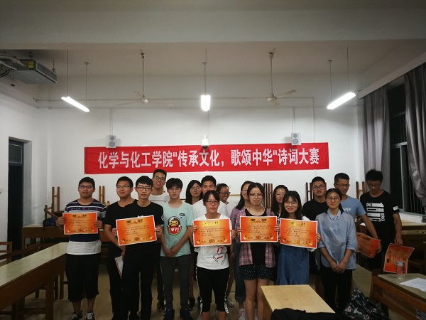 跟随着主持人的指引,在三个环节的比赛中,选手们出口成章,惊艳四座,充分展现了他们深厚的诗词积累。本次诗词大赛也在选手激烈的角逐中圆满落幕。其中,来自化学工程与工艺17级2班的牛家成同学摘得本次大赛的桂冠,来自化学工程与工艺16级3班的胡世浩和高分子材料与工程17级2班的罗彦喆同学紧随其后夺得二等奖,来自高分子材料与工程16-1班的贺楷等三名同学获得三等奖,来自高分子材料与工程16-3班的滕雪飞等四名同学获得优秀奖。