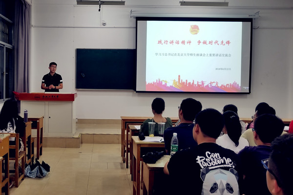 6月22日晚上,学院在翡翠湖校区三教209教室开展了“践行讲话精神,争做时代先锋”主题交流会,各学生代表围绕习近平总书记在北京大学师生座谈会上的重要讲话内容结合班级、社团建设发言。团总支代表王旭说到:“团总支要明确职能,切实开展更有意义的思想教育活动,为培养社会主义建设者和接班人发挥光和热。”学生会代表徐赫表示:“打造学生会标杆形象,以干部团队为基础,深入学习党的重要会议精神和文化课知识,从学习中探索真知。”之后,高分子材料与工程17-2班朱冉同学说到:“总书记强调学到的知识,不能只装在脑袋里,而要落实到行动上,做到知行合一、以知促行、以行求知。”最后培训班负责人田院总结中要求全体学员要牢记总书记对青年的期望,有责任担当意识,严格要求自己,抓住机会,互相交流,相互学习,取长补短。