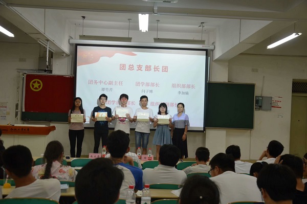 会上,本学年组织部部长李加熇 、团学部部长闫子博、团务中心主任彭文争、宣传部部长陈小雯、网编部部长张子腾和记者团团长李晖分别上台,对一学年以来的工作进行了总结,并对未来提出展望。随后,17级团总支书记王凯悦、18级团总支书记梁一鸣、17级新媒体中心主任李瑞瑞和18级新媒体中心副主席刘旭昶依次上台讲话。17级的两位干部对过去一年来的工作进行了总结,并对接下来的工作开展与18级干部提出了建议和希望;新上任的18级干部们详细地介绍了所属组织的职能,并对接下来学年的工作制定了计划,做出了承诺。接下来,院团委副书记李正星老师和17级辅导员田院老师为经过考察与答辩评选出的优秀干事们进行了颁奖,随后李正星老师和朱文拿老师为17级干部颁发聘书。最后,李正星老师对本次大会进行了点评和总结。李正星老师对两大组织和全体干部、干事们一学年以来的工作成果予以肯定,告诫所有人要清晰地认识到还存在要改进的地方,同时他希望18级干部思考“什么是团学工作、如何把常规工作做得扎实创新、如何把工作做到让更多人认可”这三个方面的内涵。