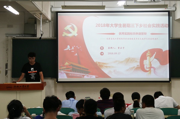 总结交流会主要围绕优秀实践团队、优秀实践标兵、优秀实践基地、优秀调研报告、优秀宣传报道五个方面开展。国家级、省级、校院级共九支暑期社会实践活动团队参加了答辩交流与优秀团队的评比。各团队通过PPT、视频、文字等材料,从活动背景、开展情况、特色亮点、宣传报道以及活动成果进行介绍。答辩过程中,丰富充实的内容体现了富有活力的思想以及坚定不移的使命感,充分展现科技支农、支教关爱、美丽中国、社情民意调研、红色革命之旅等活动特色,展现了当代大学生良好的精神面貌。接着,优秀实践标兵评比中,每位答辩同学细致清晰地表达自己对团队目标、活动意义的深刻认识,让人感受到作为一名优秀实践标兵,应有的责任与担当。随后,全体成员观看了各团队精心制作的“三下乡”活动摄影作品,带领大家一同领略改革开放带给人民生活的发展与变化。