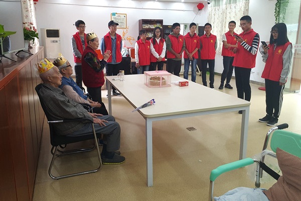 活动中,志愿者陪护老人开展趣味游戏,现场掌声、欢笑声不断,其乐融融。同时志愿者还为他们送上了自己精心准备的小礼物,拉近了志愿者与老人的心灵距离,营造了欢乐祥和的节日氛围。最后,志愿者引导老人入座生日会场,共唱生日歌为老人贺寿,送上了青年学子最真挚的关心和祝福。临别前,志愿者们与老人们共同合影留念记下了这美好的一刻,老人们纷纷表示不舍,并期待志愿者们的下一次到来。