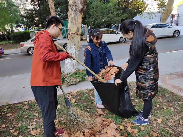 在活动开展过程中,党支部支委成员进行了清洁任务划分、工具发放等前期准备,随后党员同学们在支委的带领下,积极投入,拿起清洁工具对主教学楼前广场、两旁道路以及人行道、花坛中的落叶和杂物进行清理,并使用垃圾袋封装,不怕苦、不怕累,并坚持对死角进行清扫。在经过近两个小时的打扫后,责任区变得整洁干净,让人心情愉悦。