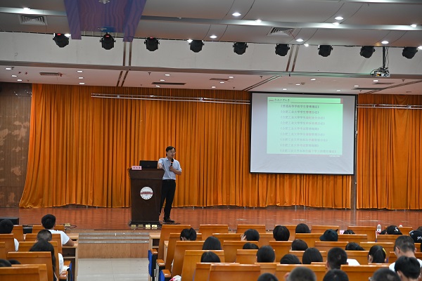8月31日下午,yl12311线路官网2017级辅导员田院老师首先为新生做了安全主题教育报告会,报告主要从交通安全、校园安全、人身安全等多方面展开入学安全教育,并着重就校园贷、网络刷单等现象阐述了其危害,告诫同学们要防患于未然。之后,2019级辅导员李正星做了以“树新规、正新风”为主题的校规校纪报告会,介绍了yl12311线路检测学生管理办法等校规校纪,通过实例强调了该院严抓学风、严考风的工作常态,强调了端正学习态度的重要性。