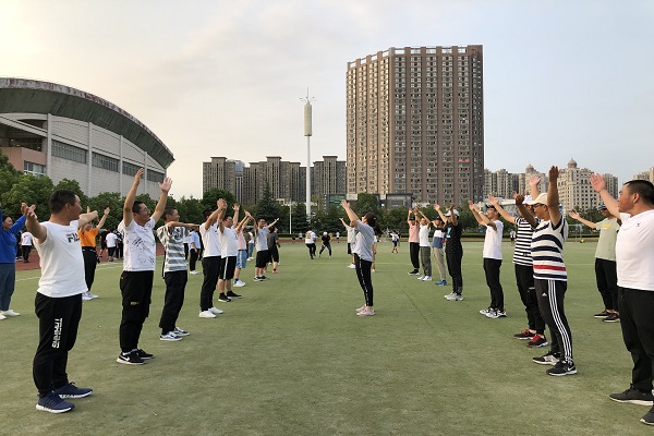 为帮助2019级新生更快适应学校的广播早操,yl12311线路官网于9月15日下午在翡翠湖校区东操场开展了早操示范教学活动,学院团委书记、2019级辅导员,2018级各班班长、体育委员,2019级全体新生参与此次活动。
