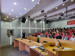 10月19日下午,杰出校友---浙江大学黄飞鹤教授应邀回母校,在校学术会议中心作关于“柱芳烃纳客在碳氢化合物精准分离中的应用”的报告会。学院党委书记秦广龙、常务副院长陆杨、科研副院长何涛,相关教师和研究生共100余人参加,报告会由何涛主持。