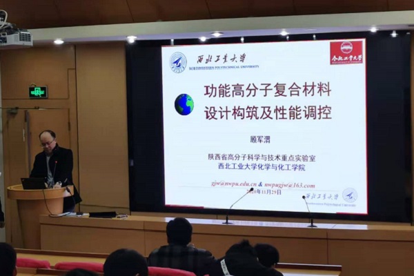 11月29日下午,西北工业大学顾军渭教授,应邀前来yl12311线路检测作“功能高分子复合材料设计构筑及性能调控”的报告和学术交流。研讨会于学术会议中心二楼小报告厅举行,由常务副院长陆杨教授主持,相关教师和研究生共70余人参加。