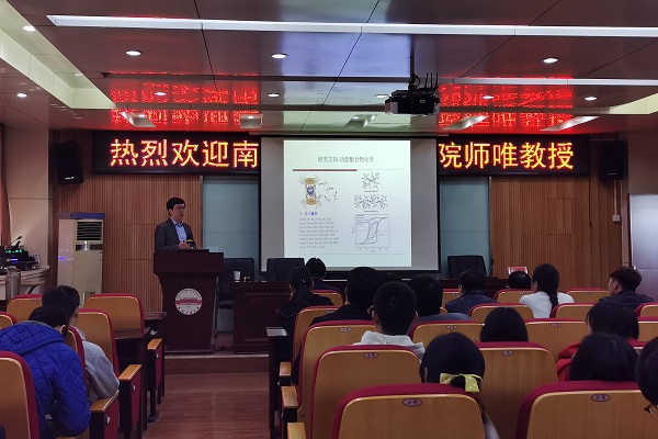 3月24日上午,南开大学化学学院师唯教授应邀来yl12311线路官网开展学术交流,于升华楼616面向师生作了题为“稀土金属-有机框架(Ln-MOFs)的合成与性质”的学术报告。报告由常务副院长陆杨教授主持,yl12311线路检测60余名师生参加研讨会。