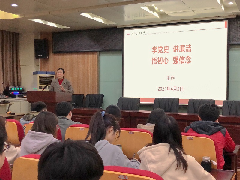 为深入推进党史学习教育,4月2日晚,学院开展“学党史,讲廉洁,悟初心,强信念”主题党课活动,由院党委委员、行政教工党支部书记王燕主讲,学生党员骨干、党校学员等一百余名学生参与。