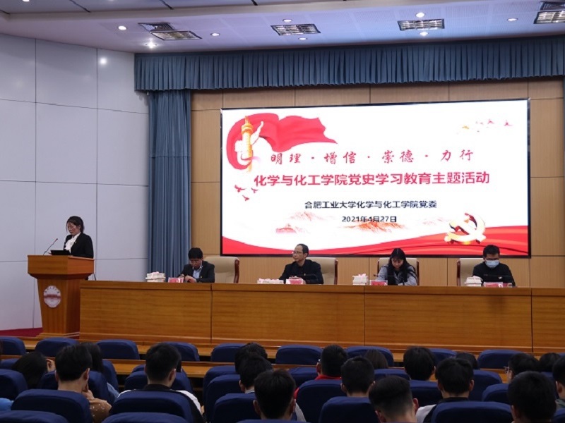 4月27日晚,学院在屯溪路校区学术会议中心一楼大报告厅开展“明理·增信·崇德·力行”党史学习教育主题活动,学院党委负责人、辅导员、全体学生党员参加活动,院党委副书记兼纪委书记张金锋主持活动。