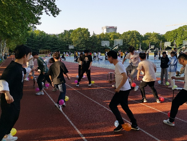 活动当天,艳阳高照,晴空万里,崔鹏、冉瑾、江耀、姚路路、张根磊等教师与研究生、本科生共40余名师生齐聚东田径场。运动会包括个人赛和团体赛两种类型,分别设立了“集思广益”“两人三足”“螃蟹赛跑”“气球大战”和“正话反做”等五个比赛项目,充分调动了同学的团队合作能力和肢体协调能力,会场气氛不断达到高潮。经过长达两个半小时的激烈角逐,共有55人次的同学获得一、二、三等奖,更有超过100人次的同学获得优胜奖。