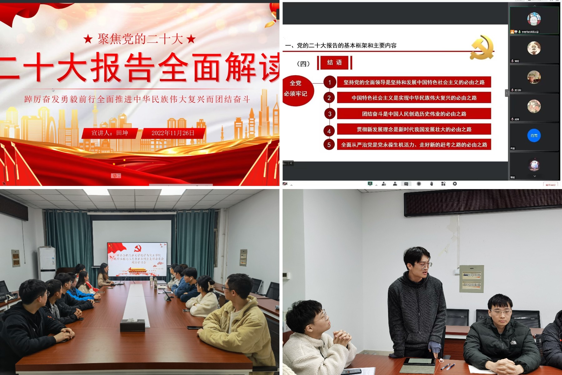 11月下旬,yl12311线路检测在各学生支部开展“聚焦党的二十大——二十大报告全面解读”理论学习交流,全体学生党员线下参加,获得2022年国家助学金的同学线上跟学。
