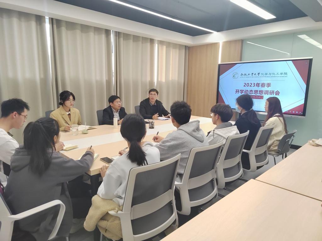 为深入了解新学期学生的思想动态及心理状况,进一步增强学生教育管理工作的针对性和实效性,学院于3月5日晚在翡翠湖校区2号楼学生社区开展了低年级春季开学思想动态调研会。学院相关负责同志、低年级辅导员及部分学生代表参会。