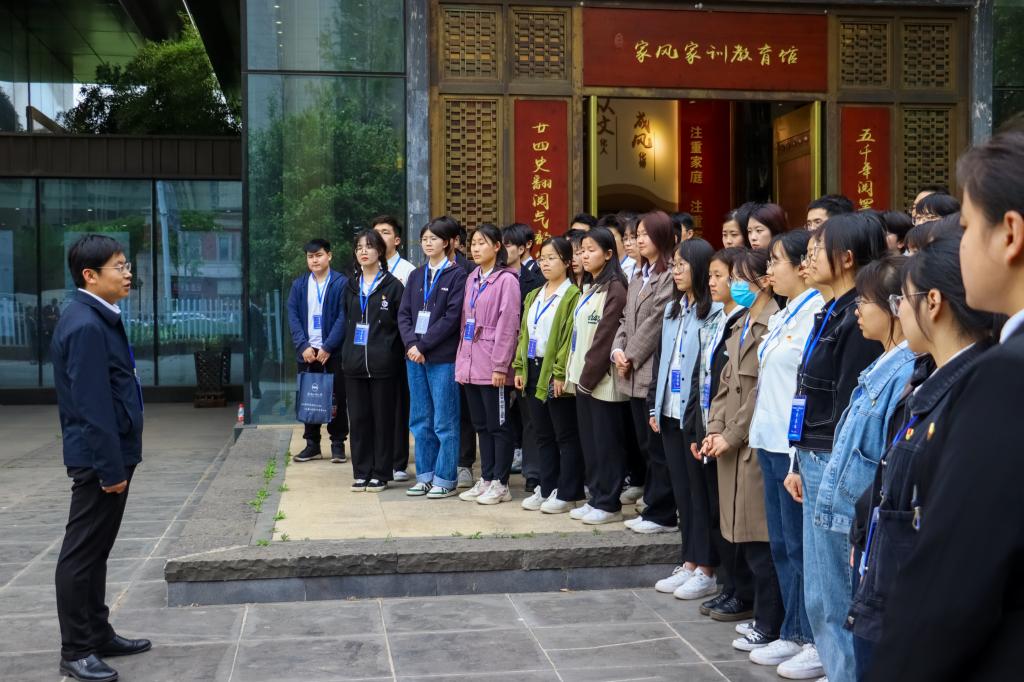 古雄社区场馆负责人严飞向师生们介绍了基地建设的相关背景和基本情况,并指引大家分别参观了家风馆、警示馆、清风廊等展区。在家风家训馆内,同学们共同学习了习近平总书记关于家风家训的重要指示。在古代先贤、老一辈革命家、当代文明家庭的家风家训展区前,大家驻足凝思,深刻体会名人家风家训的深远意蕴,领略充满温情和智慧的家风故事。随后,在展馆外长约30米的清风廊,近距离感受了从古至今的廉洁故事,感悟廉洁文化的博大精深。