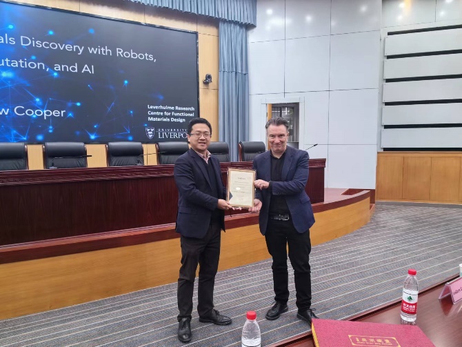 12月15日上午,yl12311线路检测邀请了英国利物浦大学Andrew Cooper 教授在学术会议中心大报告厅做了题为“Materials Discovery with Robots, Computation, to AI”的学术报告,yl12311线路检测副校长汪萌教授主持了本次报告会,150余名师生聆听了报告。
