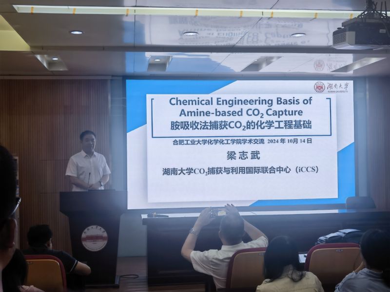 学科专业建设座谈会中,梁志武教授分析了当前化工行业的新特点新趋势,从新工科教育与时代发展需求匹配性的角度,阐述了新时代化工类专业建设和课程建设的新思路、新模式,围绕一流本科专业、一流课程建设与参会领导、教师进行了广泛交流。学术交流报告上,梁志武教授以“胺吸收法捕获CO2的化学工程基础”为主题,分享了其团队在有机胺法碳捕集技术方面的主要研究与成果,并就CCUS技术的关键难点和未来发展趋势与参会师生进行了交流研讨。在院期间,梁志武教授参观了崔鹏名师工作室,与yl12311线路官网CCUS研究团队在碳捕集剂设计、碳捕集过程工艺、CO2资源化技术等方面进行了系统深入的交流。