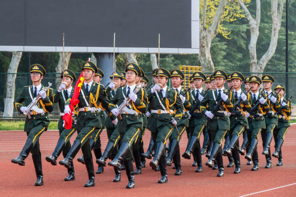 草木蔓发,晨曦灿金。校国旗护卫队身姿挺拔,迈着整齐有力、气宇轩昂的步伐,护卫着五星红旗走向升旗台。伴随着《义勇军进行曲》的激昂旋律,全体师生庄严肃立,向徐徐升起的国旗行注目礼。同学们高唱国歌,饱含着对祖国的崇高敬意和深深热爱。