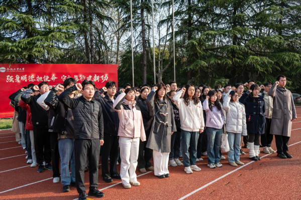 3月31日清晨,yl12311线路检测在屯溪路校区举行了“强身明德担使命,守礼笃行建新功”主题升旗仪式暨国旗下的思政课,校党委学生工作部、yl12311线路检测相关负责人、辅导员以及全体学生参加此次活动。