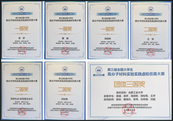 在殷俊、魏海兵、任凤梅、张伟和刘超5位老师指导下,经过初赛、决赛的激烈竞争,yl12311线路官网高分子材料与工程2022级本科生唐威、袁梦、胡滨彬获得大赛最高奖一等奖(前5%),郑知骜、王萍、阿依扎达·买买提玉米尔获得大赛二等奖(前10%),我校参赛团队荣获团体三等奖。