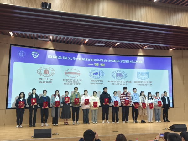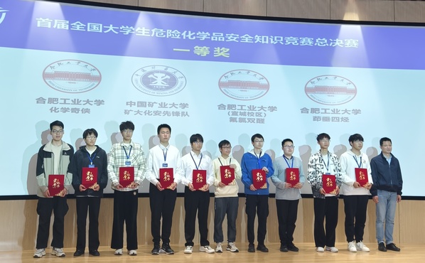 本届大赛共分为理论比赛、仿真比赛、实操比赛三个模块,内容覆盖化学品性质、储存管理、个体防护、废弃物处理及应急流程等关键环节,着重考察学生实操动手能力和安全规程的动态适配能力。我校4支参赛队伍“超级危化饼干”团队(成员:王函溪,俞丝竹,成旭)、“氟氯双醛队”(成员:张坤,汪豪,管晓苏)、“化学奇侠”团队(成员:王世鹏、孔森森、占德顺)、“茚垂四烃”团队(成员:邓道新、李俊成、诸家文),在校实验室建设与设备管理处副处长贾贤龙、yl12311线路检测党委副书记张金锋及张茂峰、周万鹏、房虹姣、李新华等老师的指导下,经过总决赛近百支队伍的激烈角逐,均斩获该项赛事一等奖,其中王函溪从300多名决赛选手中脱颖而出,获得个人“安全之星”荣誉奖,我校在该赛事中取得了获奖级别与获奖数量双优。