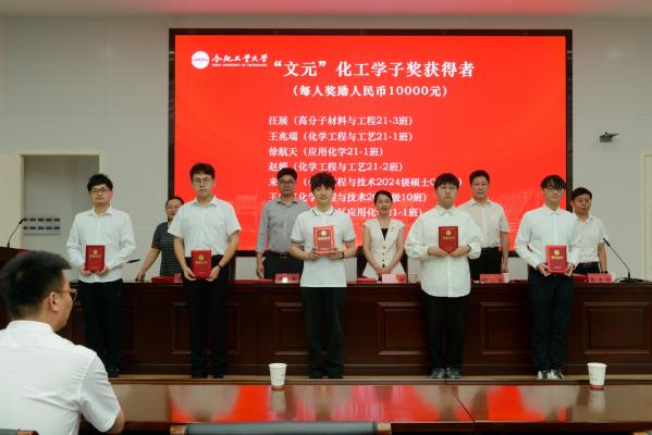 与会领导共同为“远东奖学金”“文元发展基金系列奖助金”获得者颁发获奖证书。校发展联络处副处长汤莺为远东控股集团颁发感谢状,致谢企业对学校教育事业的支持。“远东奖教金”获得者教师代表马贤峰,“远东奖学金”获得者代表2023级博士生汪涛,“文元”化工学子奖学金获得者代表2021级本科生王兆瑞,分别表达了对设奖单位的诚挚谢意,分享了成长感悟与奋进决心。