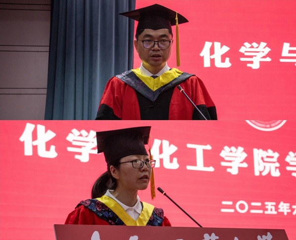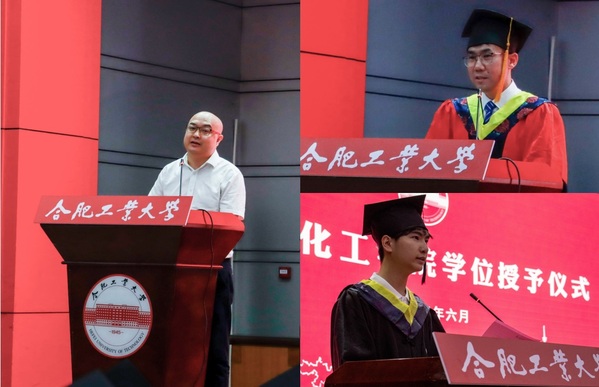 高分子材料与工程专业本科生、学校第27届研究生支教团成员李昊安作为学位获得者代表发言,表达了对学校的感激之情并表示将带着母校的重托,老师的教诲,秉承工大人“工业报国”之任,坚守“化工强国”之志,担当新时代青年的使命,积极参与到中国式现代化建设中,让青春在祖国和人民需要地方绽放绚丽之花。