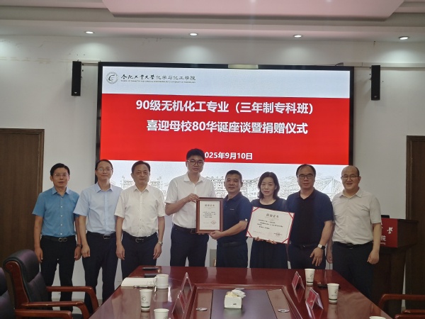 在学校喜迎80周年校庆之际,90级无机化工专业(三年制专科)6位校友代表重返母校,举行座谈并向学院捐赠3台办公设备,以此表达对母校深切的祝福与支持。院党委书记李平、原院长许民才、原党委书记秦广龙、原院办主任鲍良颖等出席活动,座谈会由党委副书记张金锋主持。